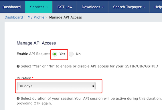 How to enable API access on Govt GST Portal?
