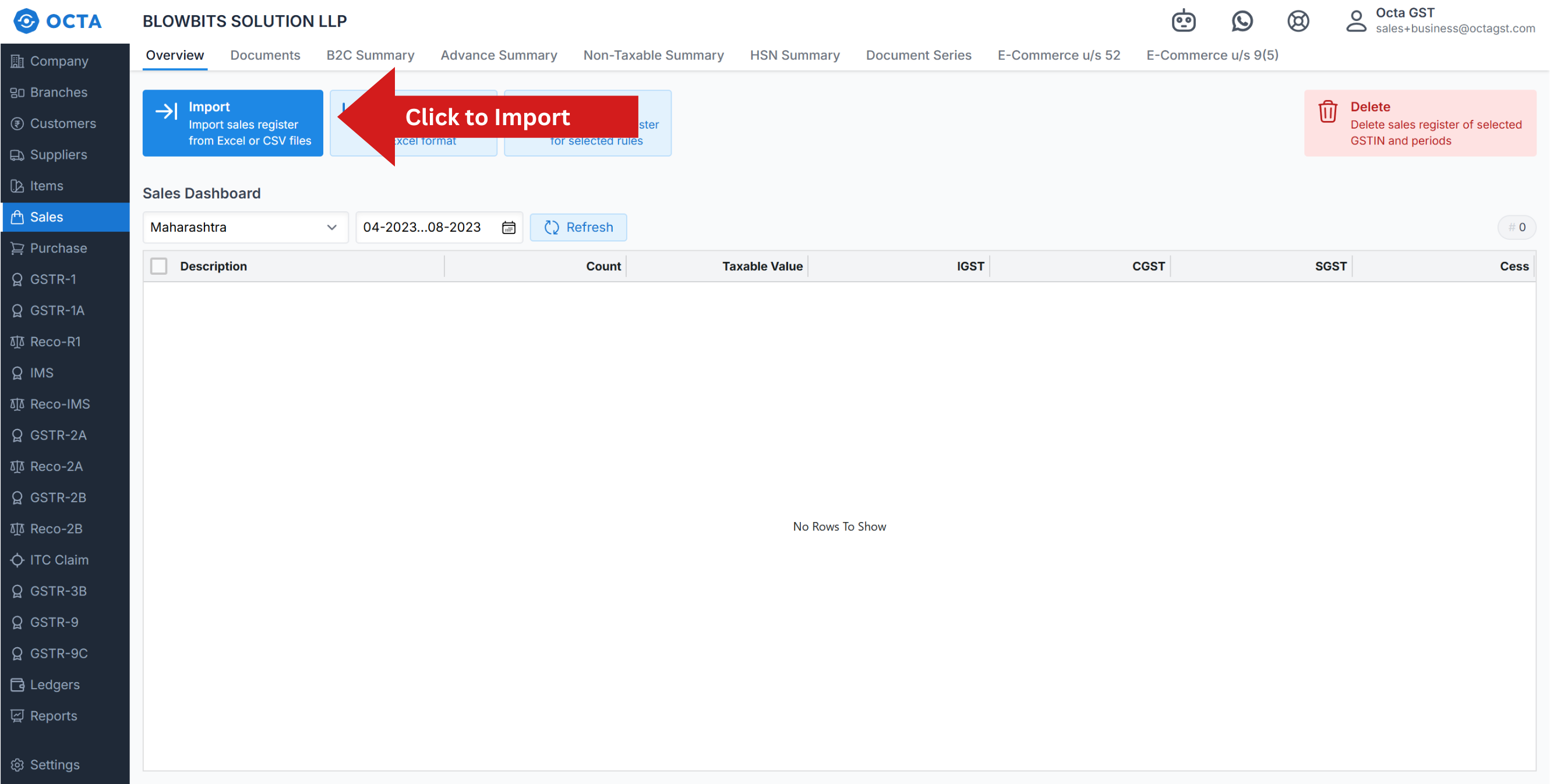 Octa needs your sales register data from your ERP (or accounting software) to help you with GST return preparation, reconciliation, and other compliance tasks.
