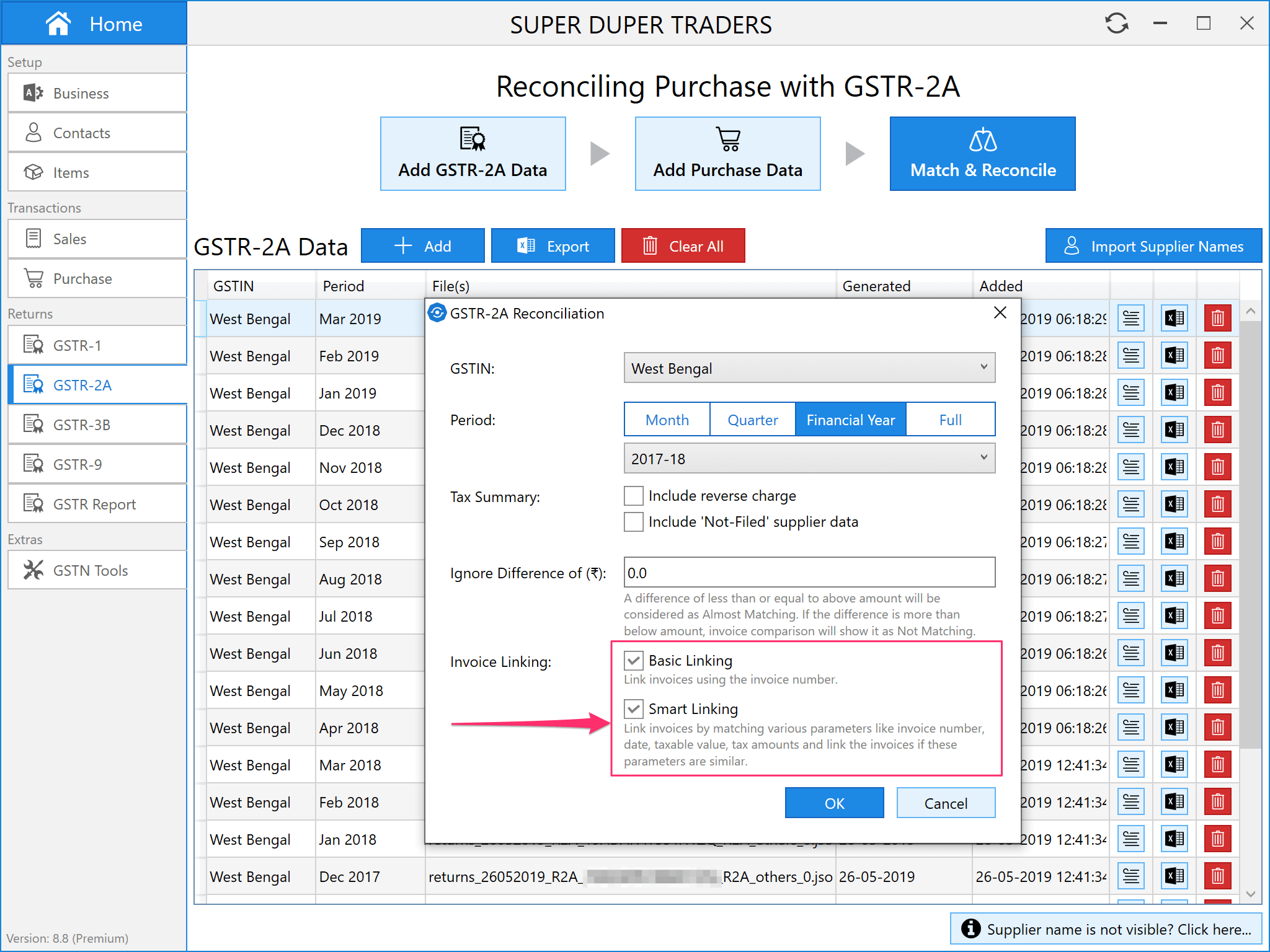 - Fixed an issue in importing supplier names from GSTR-2A Excel file. It was caused by blank supplier names in GSTR-2A Excel file.