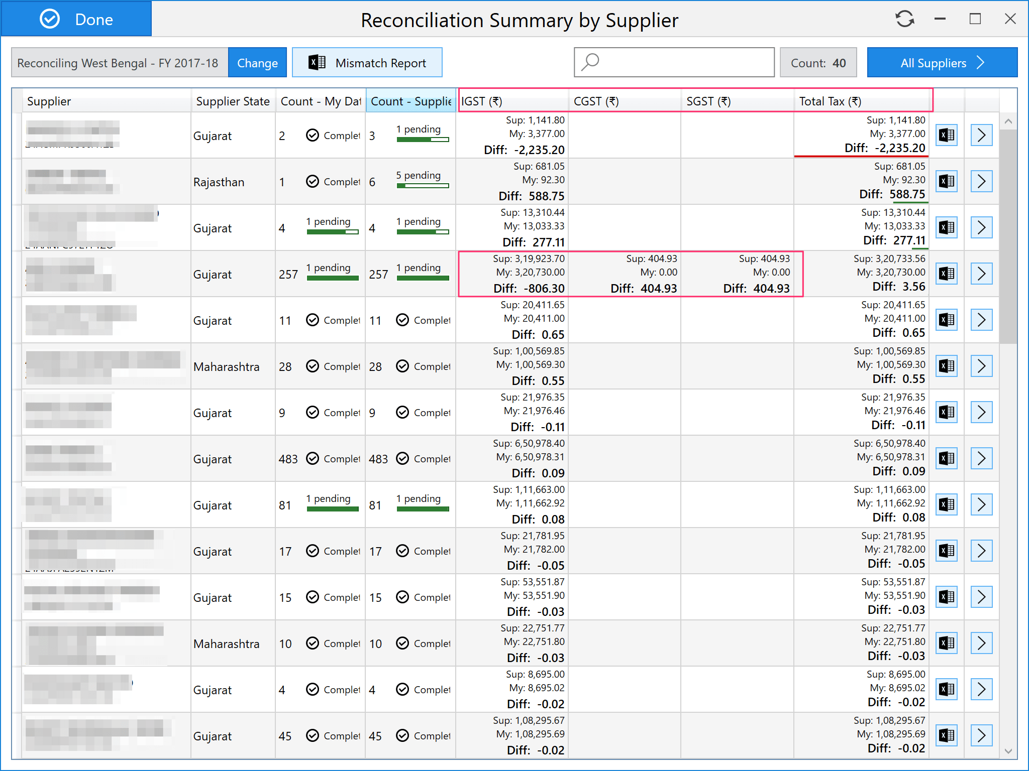 - Improved the supplier summary to show the tax amount and difference for individual tax heads (IGST/CGST/SGST/Cess).