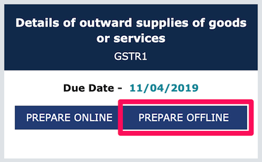 - On GSTR-1 box, click on Prepare Offline